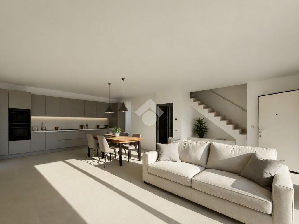 L’ingresso conduce direttamente alla zona giorno open space, ampia e funzionale, ideale per la vita quotidiana e per momenti conviviali. Completa il piano un primo bagno con box doccia e un angolo lavanderia.