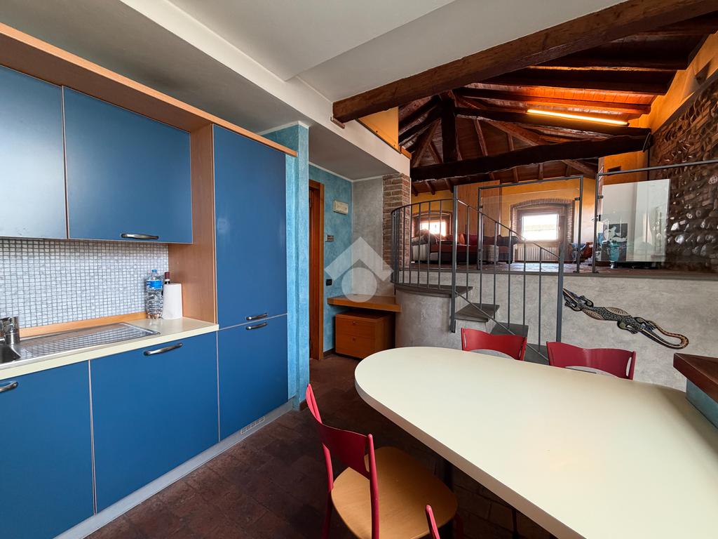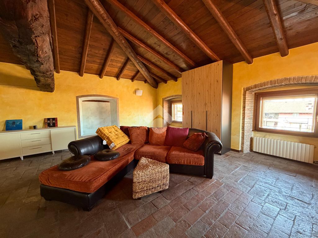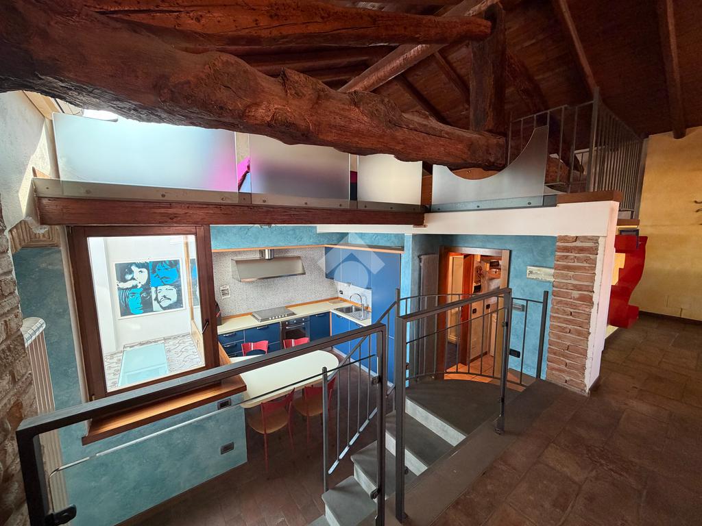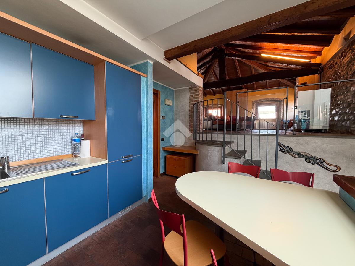 In decoroso contesto di corte ben tenuta nel centro del paese, proponiamo in vendita un caratteristico appartamento bilocale mansardato in stile loft, situato al secondo ed ultimo piano.
